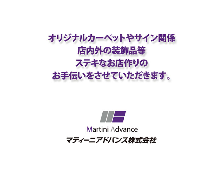 フロア・壁紙・サインサプライ・各種出力サービス・販促品・店舗改装ならマティーニアドバンスにご相談ください。