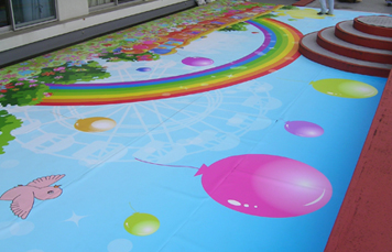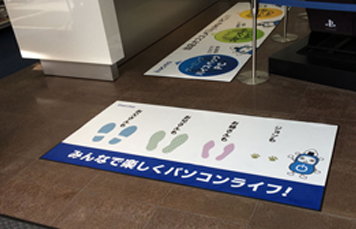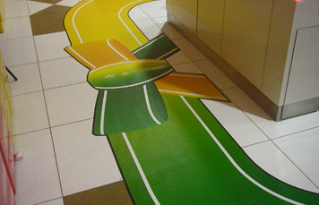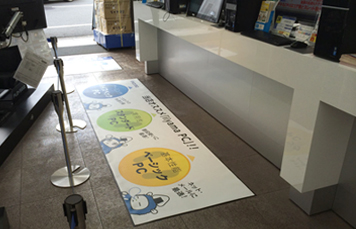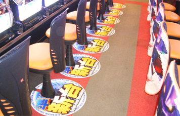 従来のフロアーシートのような施工は必要ありません。置くだけの簡単設置。コンパクトにまるめて収納も簡単です。ありきたりな四角い形だけでなく、変形タイプにも対応しています。フルカラープリントで、ワンランク上の床装飾を実現し、設置・移動・収納が簡単。パチンコホール・飲食店・アパレルショップなど、お店の個性をお客様にアピールしたい場所に床全面からの演出ができます。
